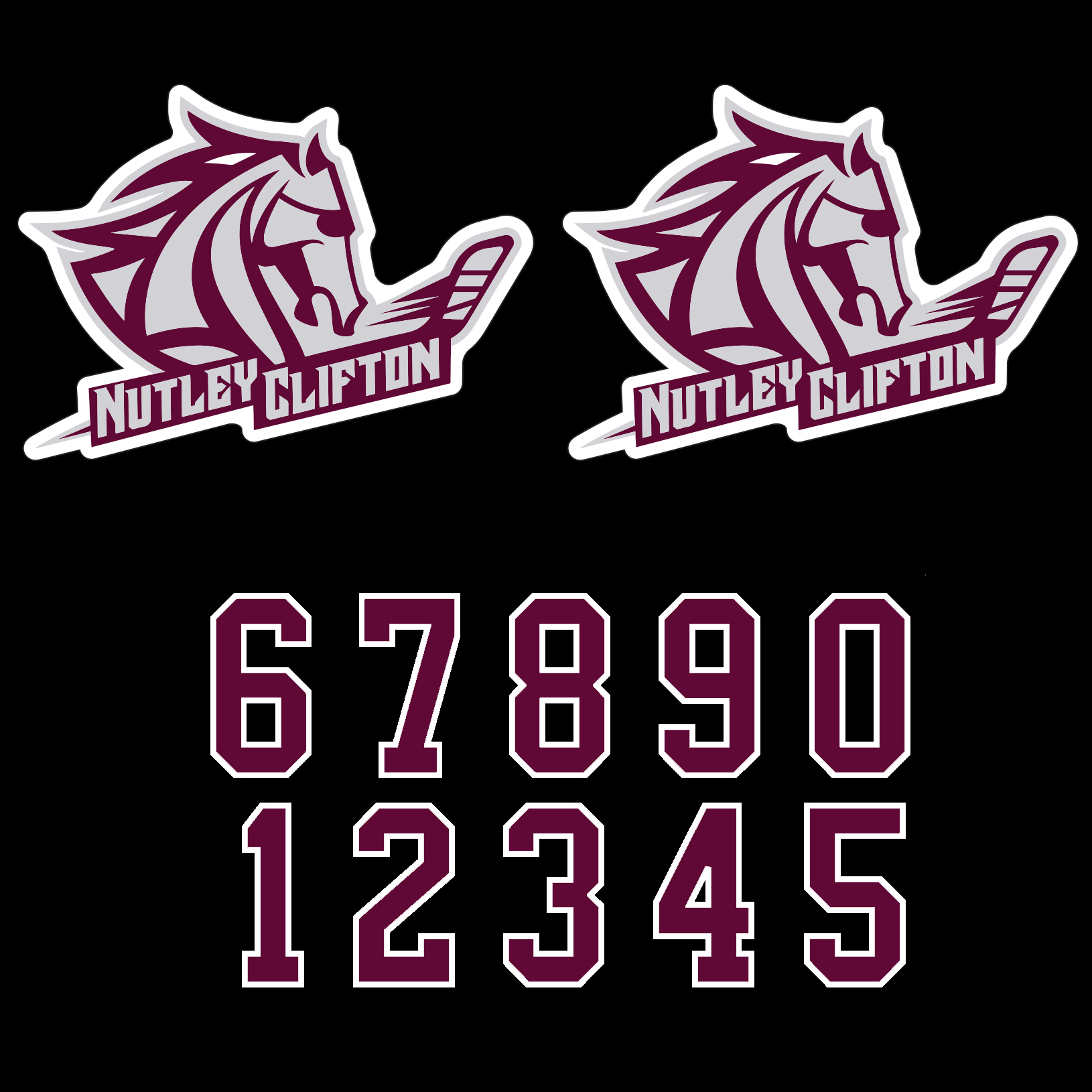 Includes two helmet decals (3.5" by 2.5") and two color player numbers.