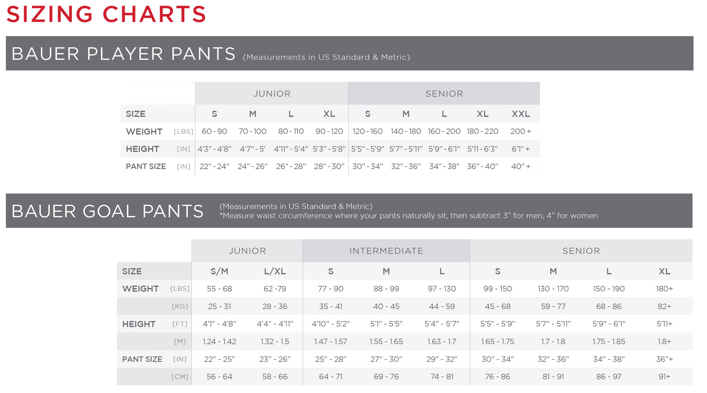 Please note: the Bauer cover shell is included in the package. Players may upgrade to custom Bauer pants that replace the shell for an additional $55 for Youth sizes, $85 for Junior sizes and $115 for Senior sizes.