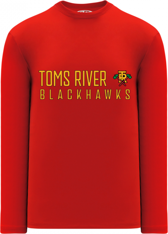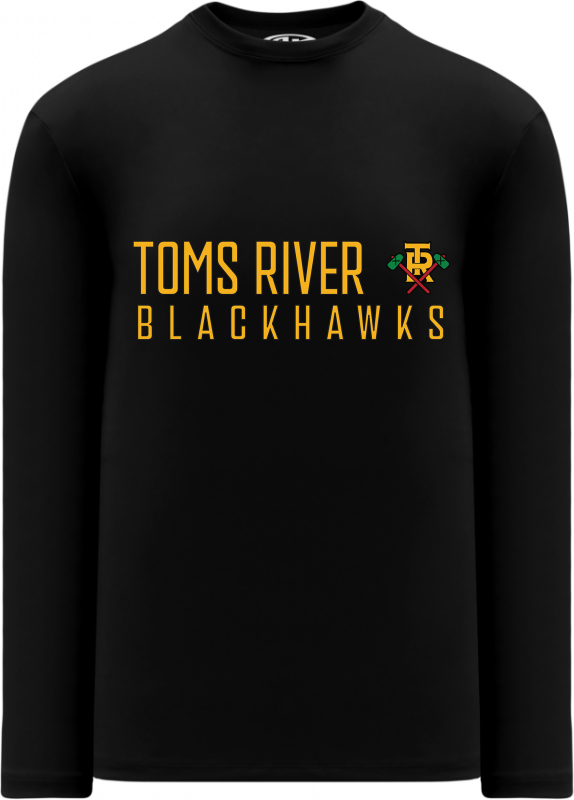 AK Long Sleeve Performance shirt. 100% Polyester moisture wicking material. Toms River Blackhawks logo printed on front.